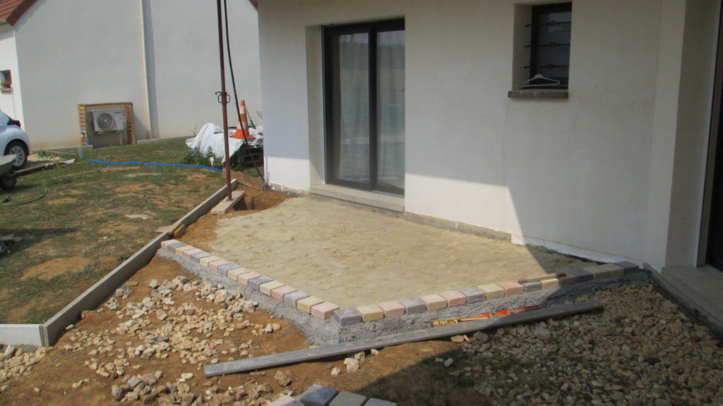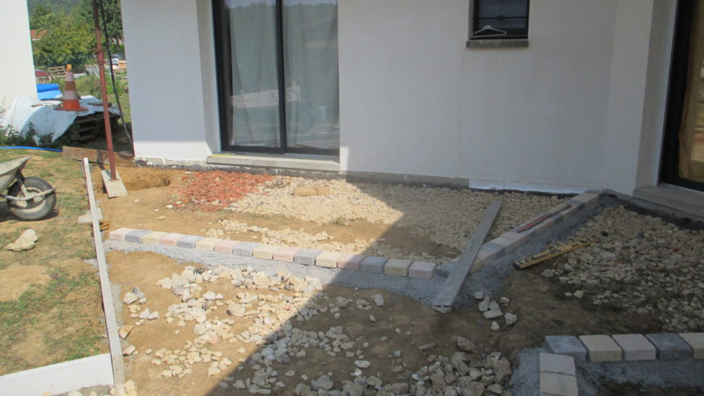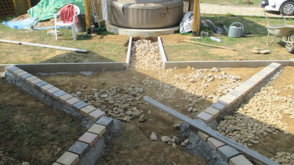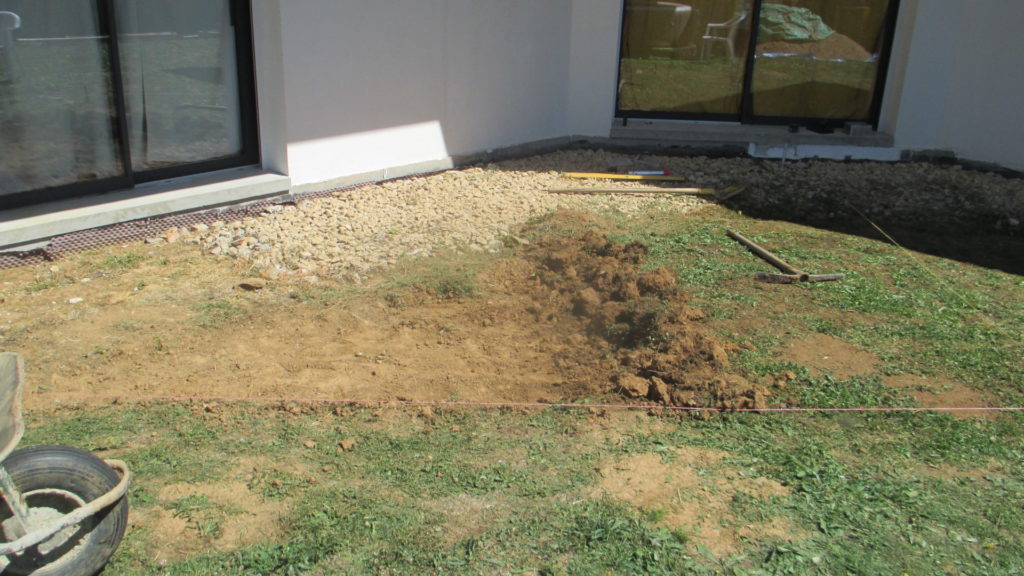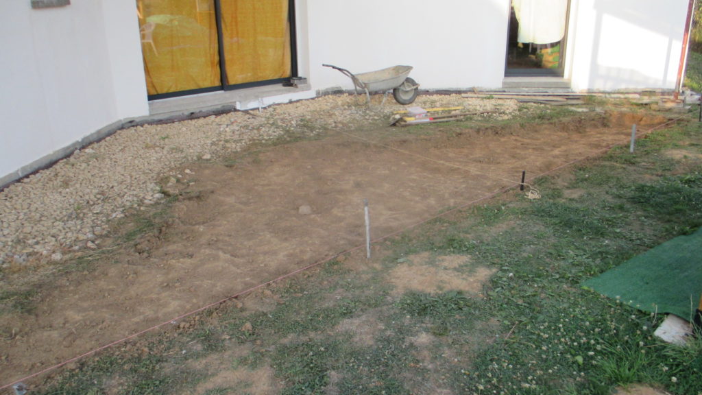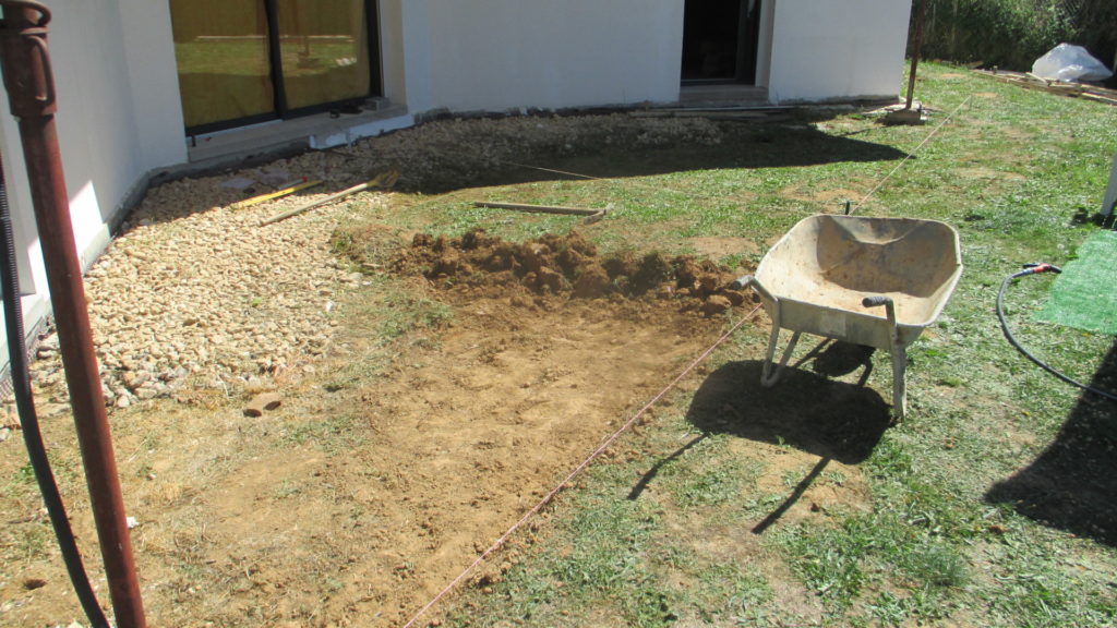 Terrasse coté sud, début avec décaissement parce que niveau trop haut :