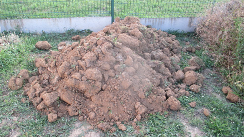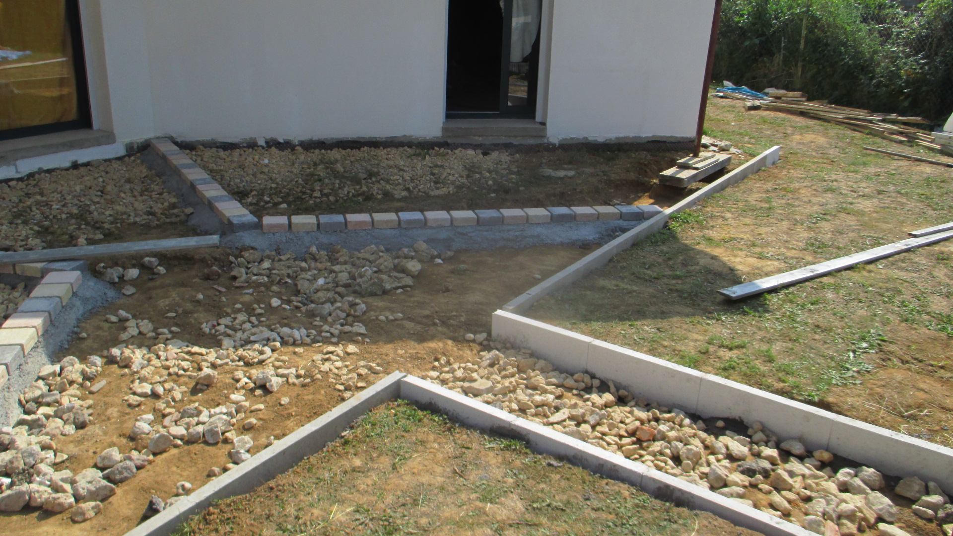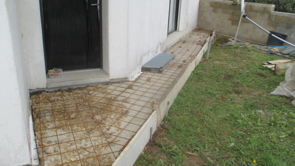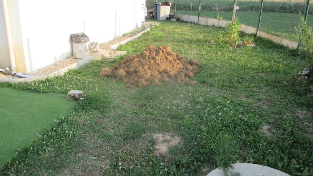 Terrasse coté sud, début avec décaissement parce que niveau trop haut :