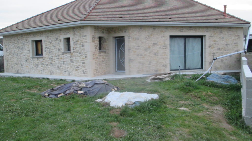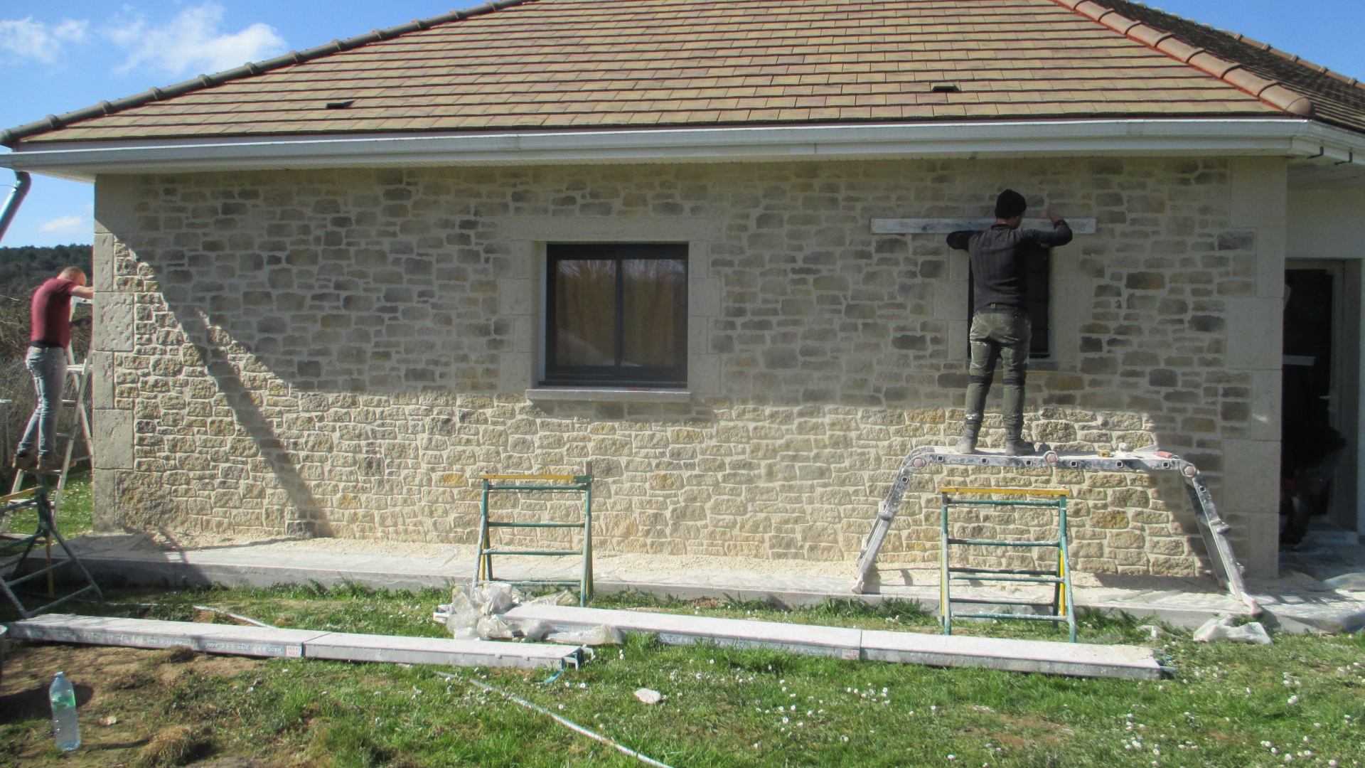 Après des contraintes météo répétées, enfin l’enduit de façade.